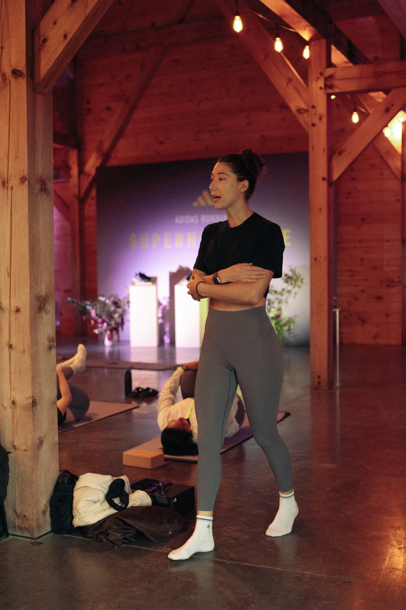 Natalia led a group of women through an athletic recovery flow and meditation at the Adidas Supernova Dream Retreat.